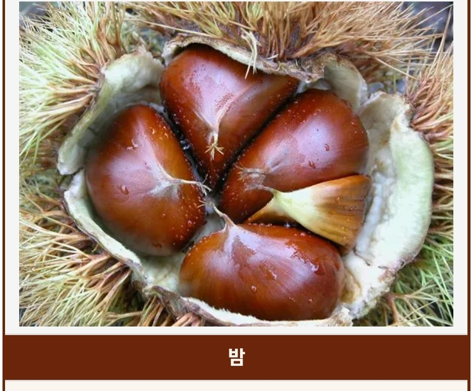 밤의 전분은 굉장히 양질이고 몸을 살찌우는 성분이 많이 들어 있어서 소화가 잘 되기 때문에 환자나 허약체질인 사람에게 좋다. 또한 다른 걸 안 먹는다는 가정하에 밤은 영양소가 복합적으로 들어 있어 다이어터들에게도 좋은 식품이다. 운동을 병행한다면 더할 나위 없는 완전식품