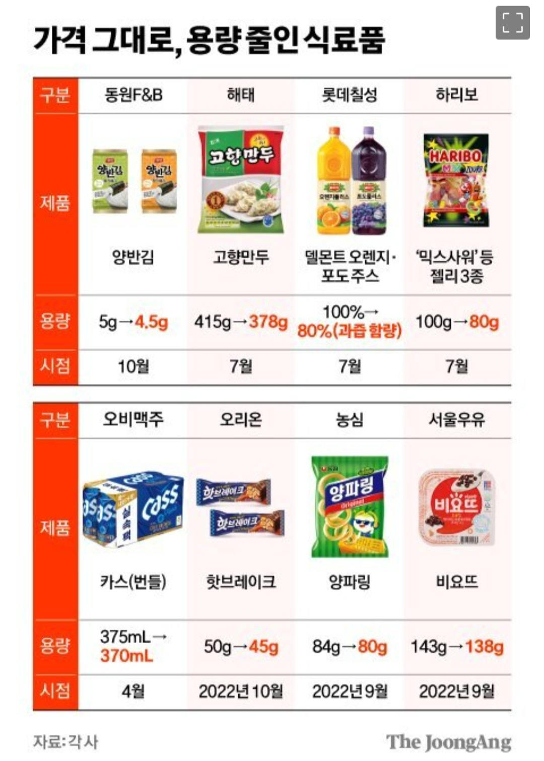 [] 값 못 올리니 양 줄인다. '꼼수' 인플레이션